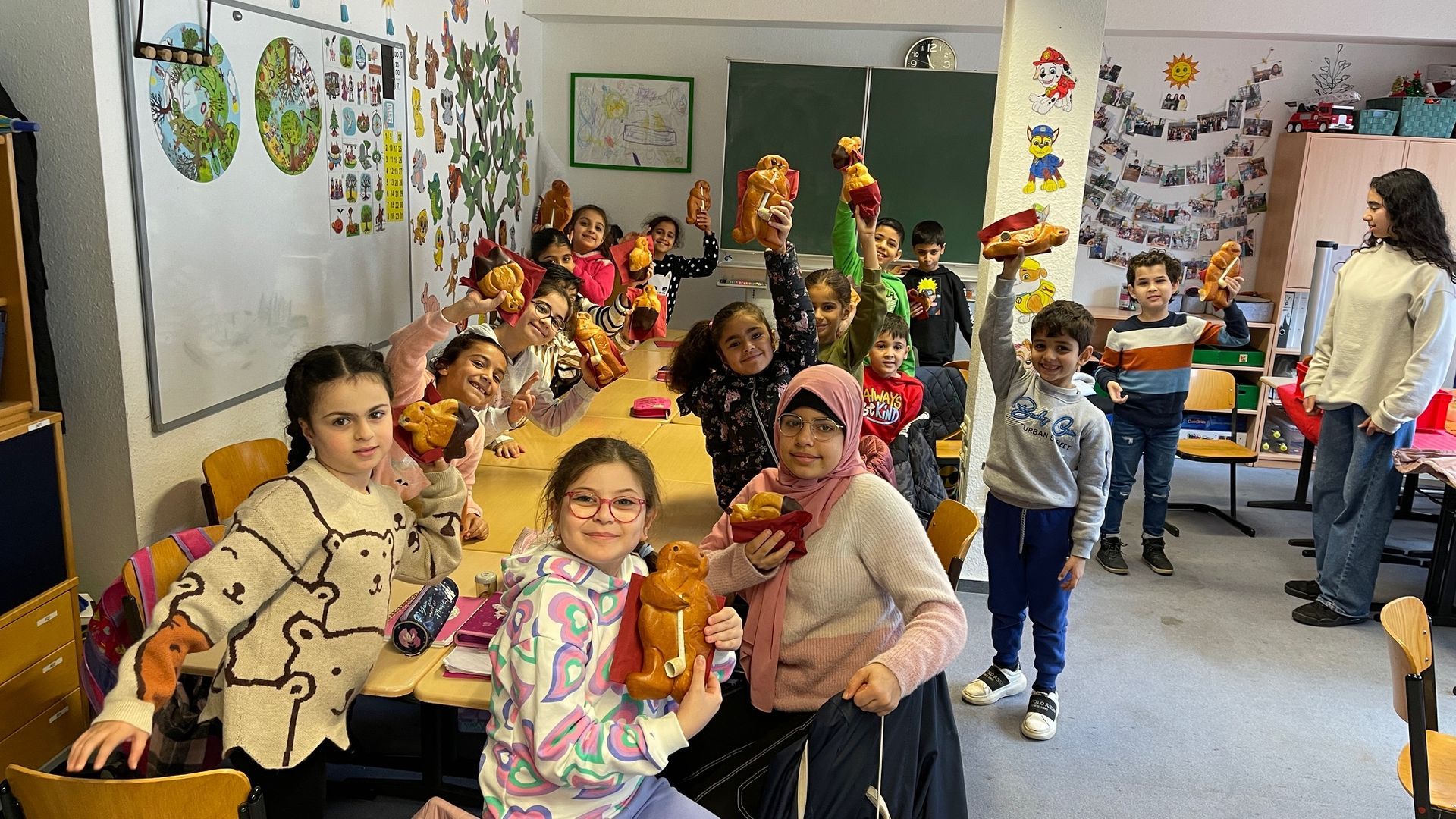 Herr Anders hatte - wie im letzten Jahr - auch mehr als 280 Brezel beziehungsweise Stutenkerle in den Klassen und Gruppen verteilt. Sowohl die Schülerinnen und Schüler als auch die Kinder in der Kinderbetreuung und unsere Mitarbeiter/-innen hatten sich darüber sehr gefreut. An dieser Stelle möchten wir uns ganz herzlich bei der Bäckerei Malzers bedanken.